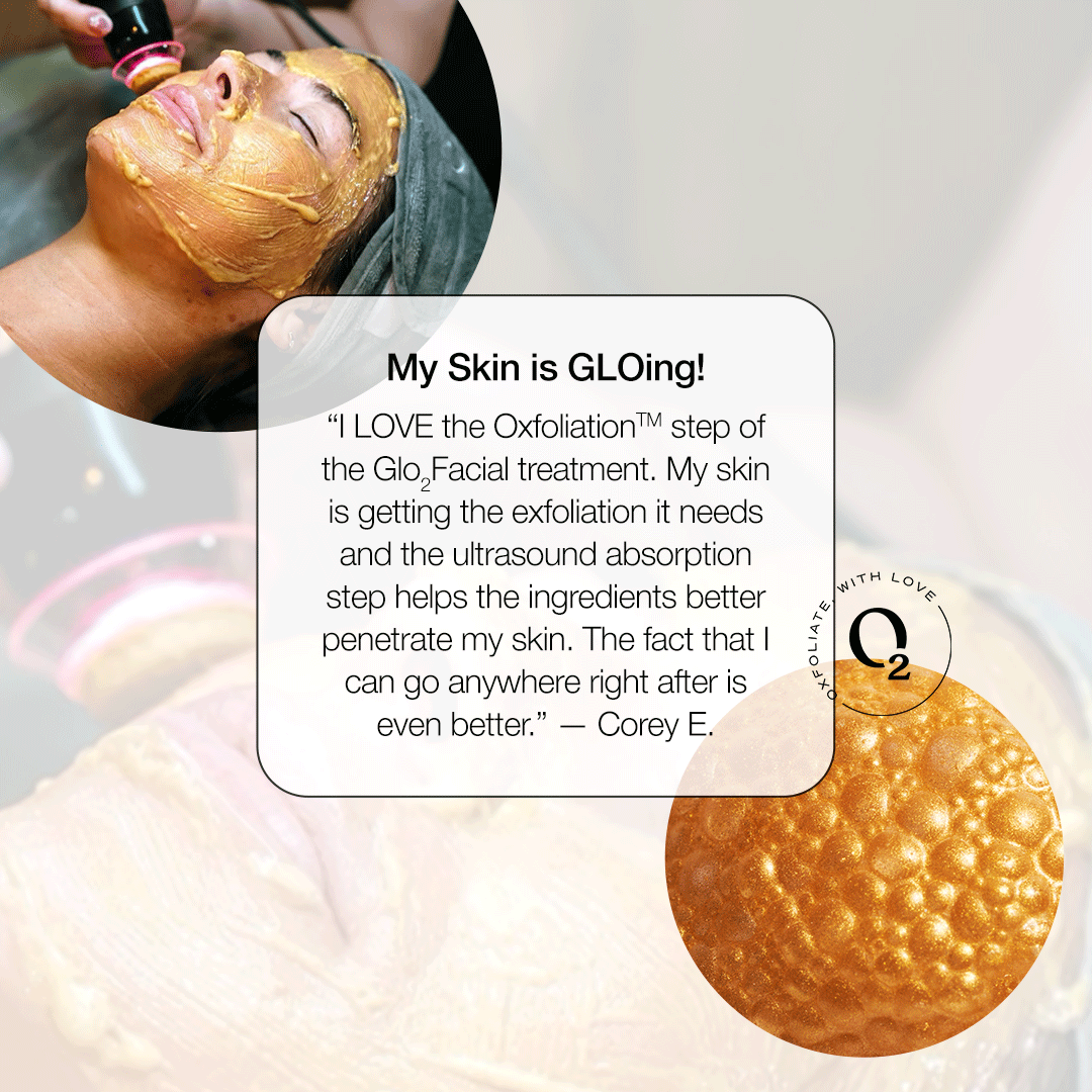 Glo2Facial is for everyone! This is the way to extraordinary outcomes when it comes to your skin. Glo2Facial is a breakthrough three-step non-invasive treatment that oxygenates, exfoliates, and infuses our high-quality ingredients into your skin. Glo2Facial OxyPods react with Primer Gel to gently exfoliate the skin and create a bubbly, CO2-rich environment on the skin’s surface. The body responds by sending a surge of oxygen to the skin, which creates ideal conditions to nourish and transform the skin from the inside out. We then infuse and smooth with our ultrasound and complete the facial with a relaxing, hands-free lymphatic massage that sculpts the face, delivering an instant reduction of redness and puffiness while infusing active ingredients even deeper into the skin.